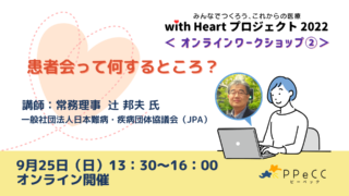 【プロジェクトについて】一般社団法人ピーペックが主催する「みんなでつくろうこれからの医療with Heart プロジェクト」。心臓病はだれにでもなる可能性のある病気です。心臓病をもっている人、心臓について不安がある人、ご家族・友人、医療者、企業などあらゆる人が集まり、共に学び・話し合い「心臓病があっても大丈夫と言える社会」の実現を目指すもの、それが「with Heartプロジェクト」です。