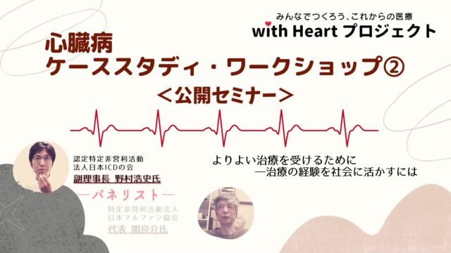 心臓病ケーススタディ・ワークショップ➁公開セミナー「よりよい治療を受けるために-治療の経験を社会に活かすには」